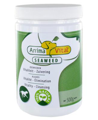 Dit zeewierpreparaat van ANIMAVITAL bevat met Fucus vesiculosis, Fucus serratus en Ascophyllum nodosum (Blaaswier, kelp) zeevoedsel van topkwaliteit, geoogst aan de zuivere Bretoense kusten. Zeewier is een rijke organische bron van mineralen, sporenelementen, vitaminen en aminozuren. Het dagelijkse toevoegen ervan aan het voer van uw dier bevordert de algemene stofwisseling. Dit kan zich vertalen in meer vitaliteit, een betere conditie en prestaties. Tevens wordt de spijsvertering ondersteund, gaat de vacht meer glanzen en verbetert de kwaliteit van beenderen. Zeewier is in het bijzonder aangewezen als uw dier tekenen van mineraaltekorten vertoont: bij zandeten, likken aan voorwerpen….